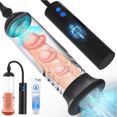 La fameuse pompe à pénis. Celui ci nous l'avons choisi car il s'agit d'un jouets sexuels 2 en 1 pour homme : l'appareil n'est pas seulement un agrandisseur de pénis, mais aussi un masturbateur masculin.